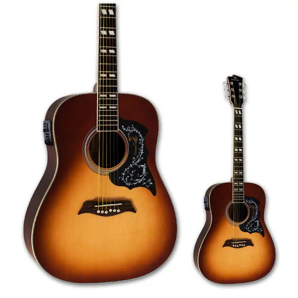Ele vem com um tampo de cedro, laterais e fundo de meranti e uma escala de jacarandá. Ele também possui uma ponte simples e cordas de aço, oferecendo um som claro e equilibrado.
